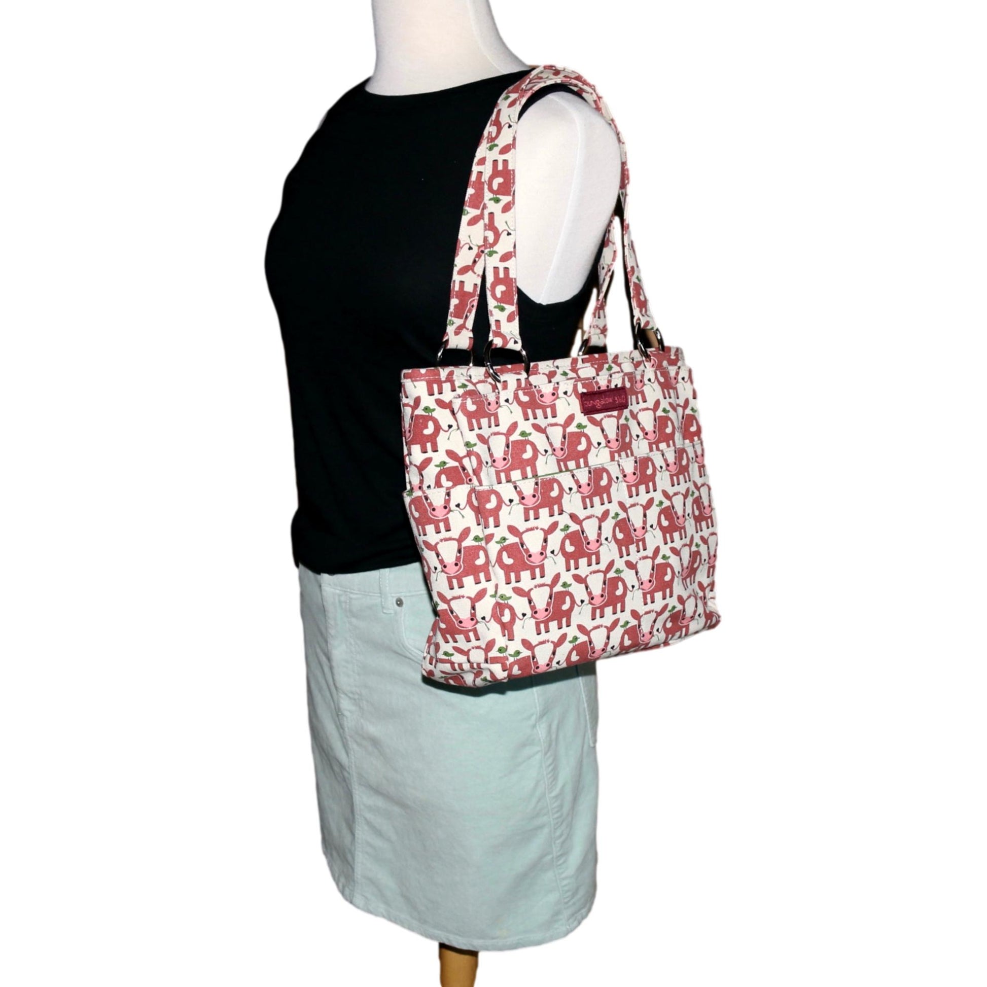- Cute polka dot lining. Measures 10" H X 11"W X 4.5"D. Strap drop length 9