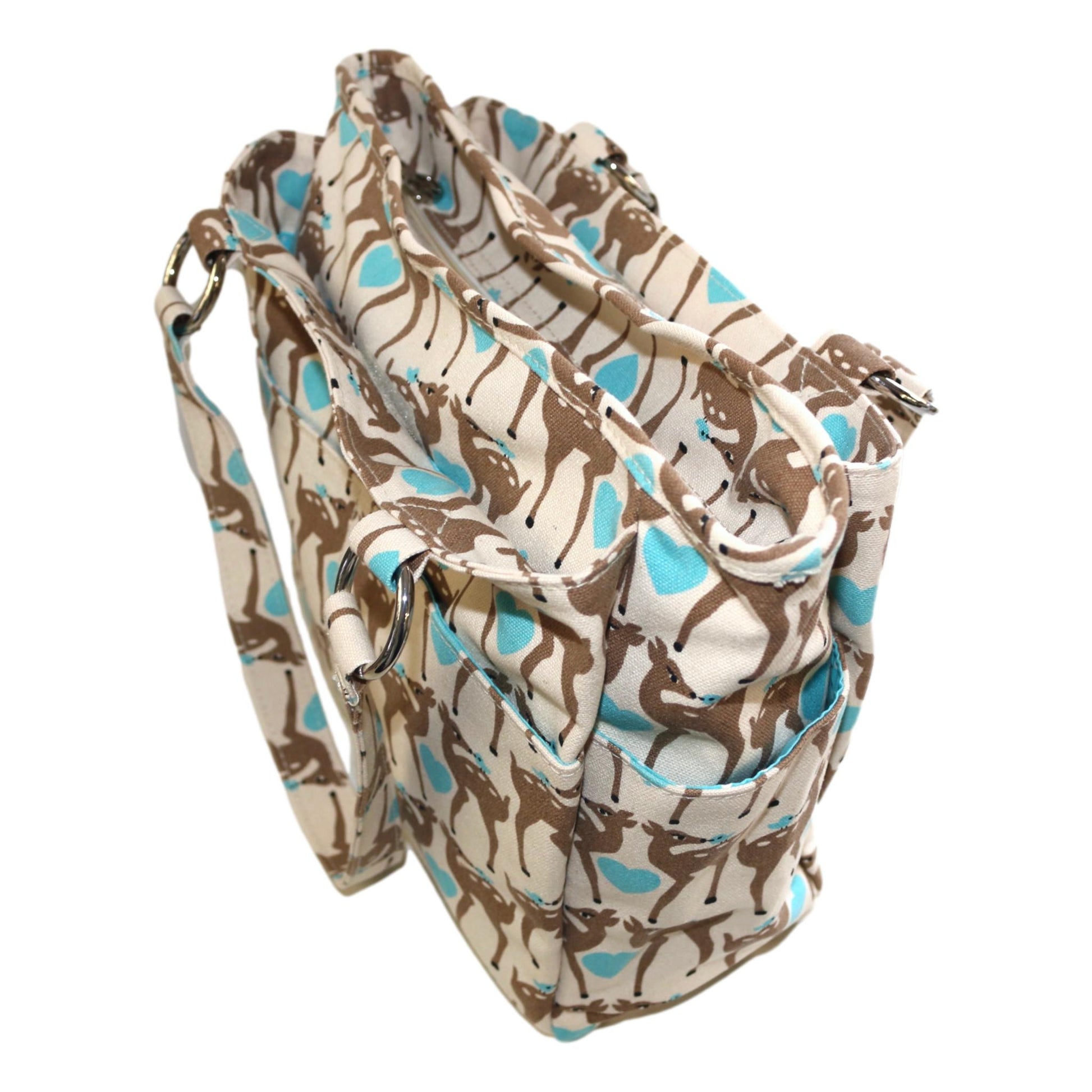 - Cute polka dot lining. Measures 10" H X 11"W X 4.5"D. Strap drop length 9