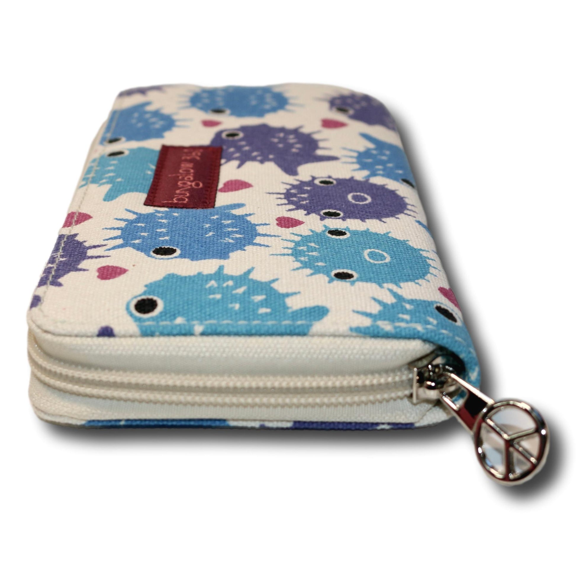 - PERFECTLY SIZED: Natural Cotton Canvas,100% Vegan, Measures 8 x 4 x 1 inches, 4 interior card slots,1 interior clear ID slot. 1 interior zippered coin pocket. Signature peace-sign zipper pull.